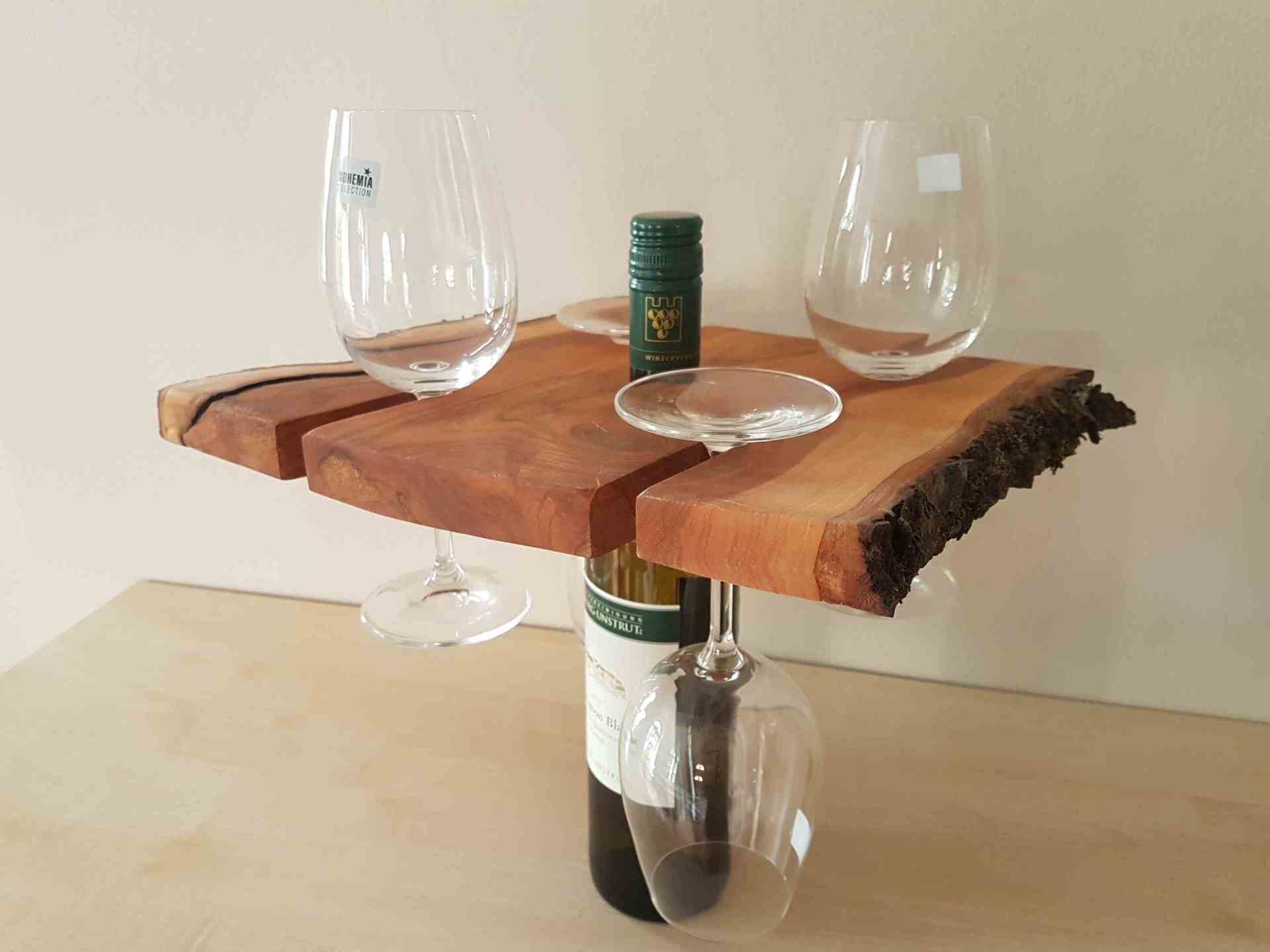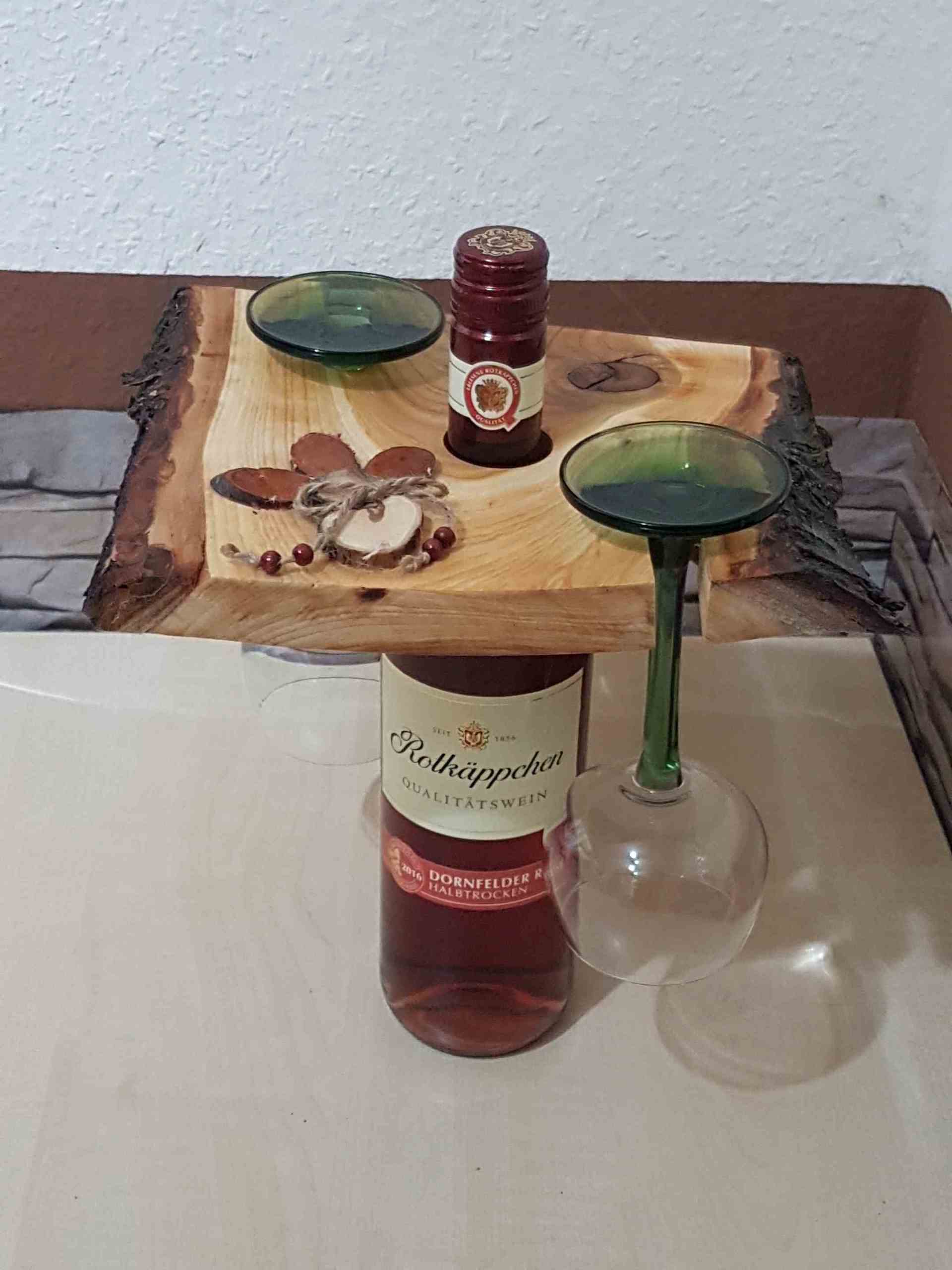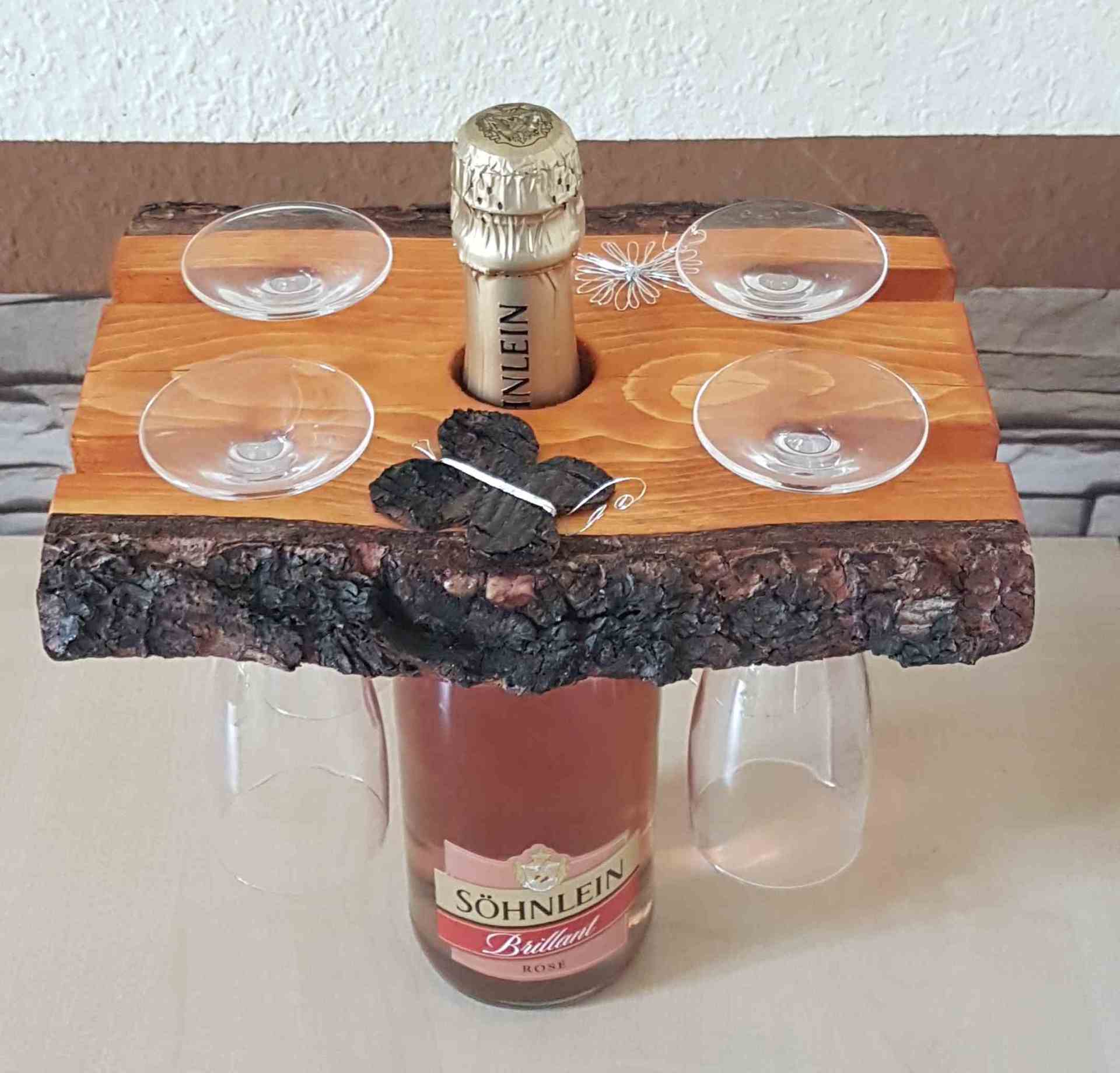 Unsere "Weinbretter" und "Sektbretter" sind eine raffinierte Geschenkidee zu jeder Gelegenheit. Anstatt einfach nur eine Flasche zu verschenken, kann man sie hiermit neckig, edel oder rustikal "verpacken". Die Bretter werden einfach über den Flaschenhals geschoben und an den Seiten werden die Gläser eingehangen. Und nach dem Verschenken ist es immer wieder eine originelle Dekoration.
